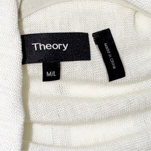 Theory Cocoon Long Curved Hem Cardigan Sweater Open Front Sz M/L Ivory Linen/Vis
