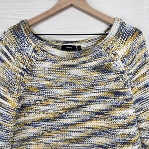 Theory Coella Knit Sweater Size Small Denim Mix Soft Chain Drawstring Boatneck