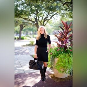 Theory / Combo Dress Bistretch Wool Twill ribbed sweater black turtleneck s