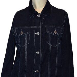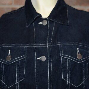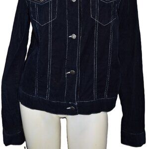 Theory Corduroy Jacket Womens L Large Black Cotton Lycra Blend 5 Metal Button