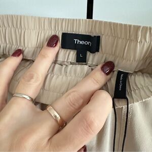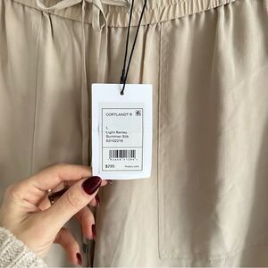 Theory Cortland Summer Silk pants in Light Barley. 100% silk, semi sheer, straight leg, drawstring waist, front and back pockets. Brand new with tags, retail $295.