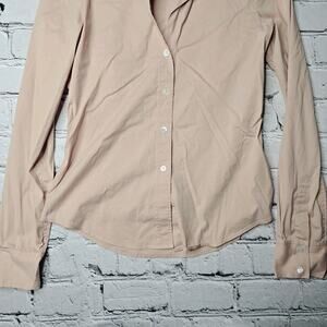 Theory Cotton Blend Pale Blush Pink Button Up V Neck Collared Blouse Size P