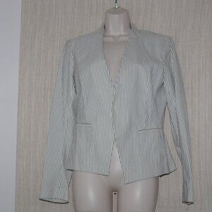 Theory Cotton Blend White Striped Blazer Coat Women Size Size:6