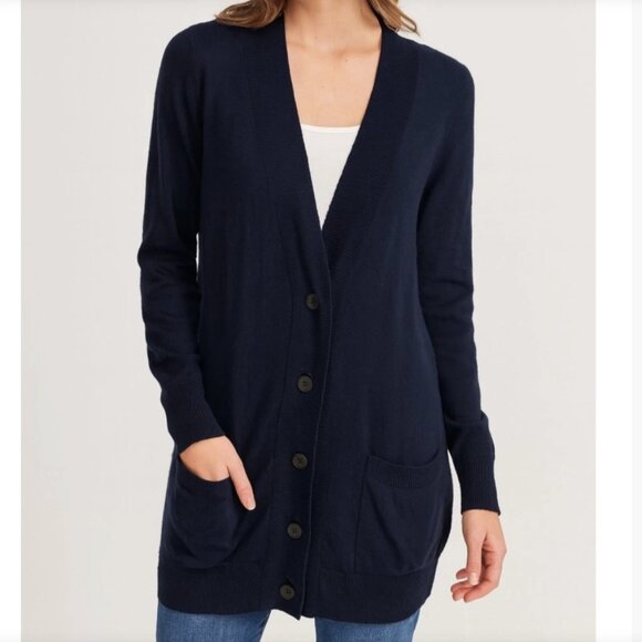 Theory Cotton Cashmere Blend V-Neck Cardigan Sweater in Navy Size Large