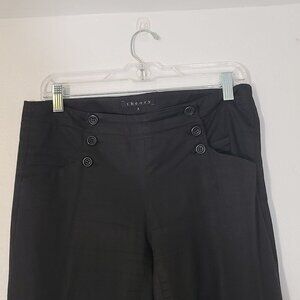 Theory Cotton Twill Flare Leg Pant Black Double Side Button Placket Front Size 6