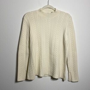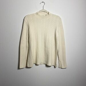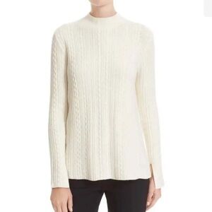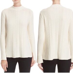 Theory Cream Friselle Plumose Cable Knit Sweater Mock Neck Wool STRECH