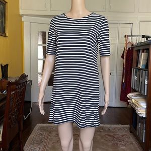 Theory Crew Neck T-Shirt Mini Dress Navy White Stripe size M