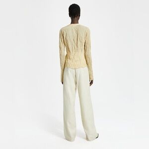 Theory Crinkled Cardigan Metal Crepe Medium Gold