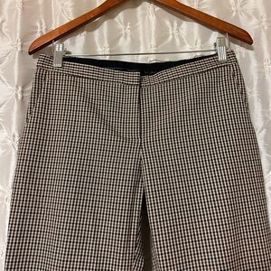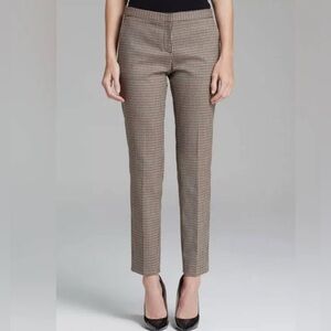 Theory Cropped Intrigue Pants Plaid Wool Brown Tan Checkered Ankle Trouser