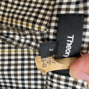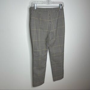 Theory Cropped Checked Woven Straight Leg Slit Pants 2 Brown Black Yellow Plaid