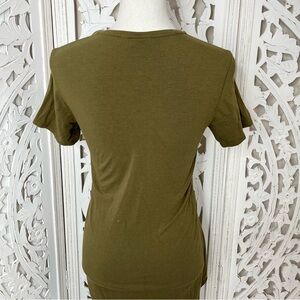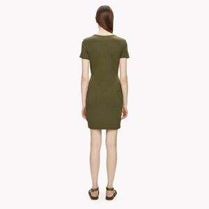 Theory Dark Basil Tie Knit T-Shirt Dress in excellent condition - gently worn with no flaws. Soft cotton/modal/spandex fabric, pullover style. Color is dark basil (an olive green). Sold out.