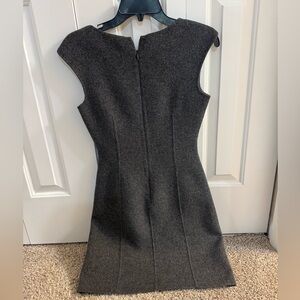 Elegant wool dark gray mini dress with cap sleeves. Ideal for any occasion.