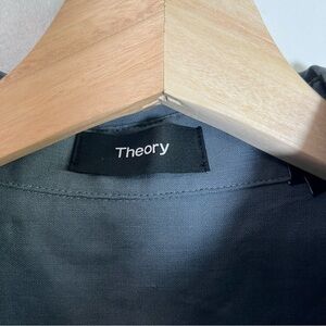 Theory Dark Gray Cropped Sleeveless Button Up Collared Shirt, Size Medium