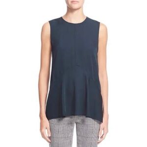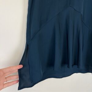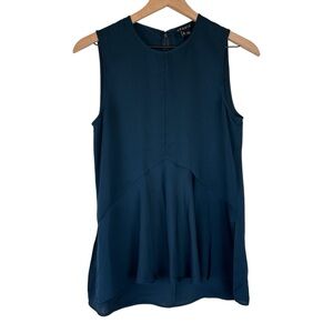 Theory Dark Mineral Teal Laycee Sleeveless Arched Hem Silk Top