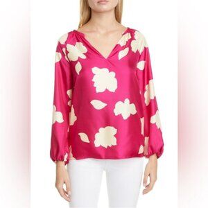 Theory Dark Pink Magenta Open V-Neck Top in Petal Print Silk Size Small