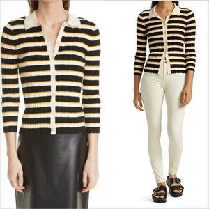 Theory Deep V Cardigan Hudson Stripe Cotton Size Medium Rib Knit