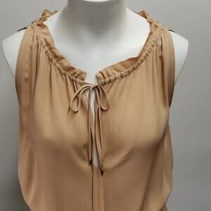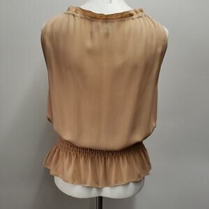 Theory Dezzie Classic Tan Tank Top Silk Women's Small Peplum Careerwear Office