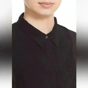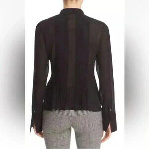 Theory 'Dionelle' Pintuck Pleat Textured Chiffon Black Sheer Blouse 100% Silk S