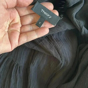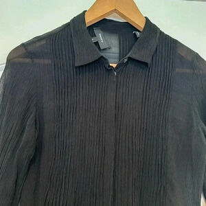 Theory 'Dionelle' Pintuck Pleat Textured Chiffon Black Sheer Blouse 100% Silk S