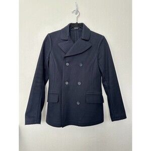 Theory Dorima Raw Edge Double Breasted Wool Cashmere Coat Navy Blue Women's 0.
