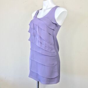 Tags: Theory, Dorosa, silk dress, lavender mini dress, tiered dress, Y2K party dress, date night outfit, cocktail dress, racer back, scoop neckline, summer mini dress, size 0, whimsical, Romantic