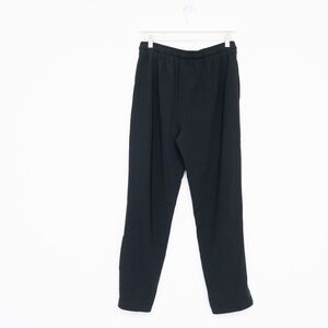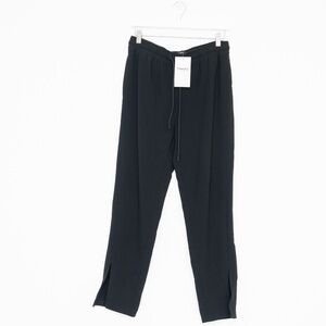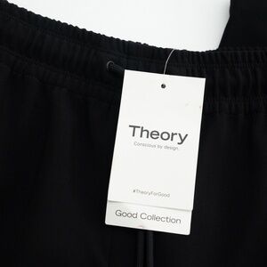 From Theory, these Double Knit Jersey Slouchy Jogger Pants combine laid-back comfort with refined design. Crafted from a soft, mid-weight jersey, they feature an elasticized drawstring waist, dropped crotch, and side slit pockets, with tapered legs and ribbed cuffs for a clean finish. Front slits at the ankles add subtle movement, while the double-knit fabric delivers structure and stretch for an easy, modern fit.