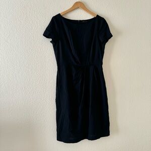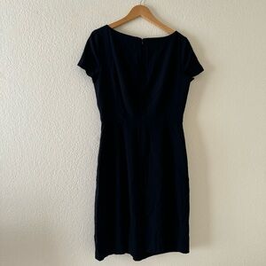 Hidden back zipper Short sleeve Draping at the waist Dry clean only Material: 50% virgin wool, 50% viscose