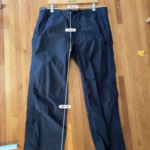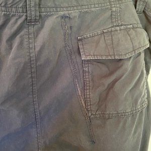 Hiking pants with articulated knees. Top stitching down outseam. Tear in the ass has been professional repaired. Great summer beater pants.
