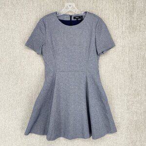 Theory Dress Womens 8 Blue Textured Fit Flare Career Albita Short Bloucle Knit