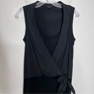 Theory Women Size 6 Black Front Tie Silk Blend Layered Tank Sheath Dress Scoop Neck