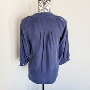 Theory Embroidered Silk Half Sleeve Blouse