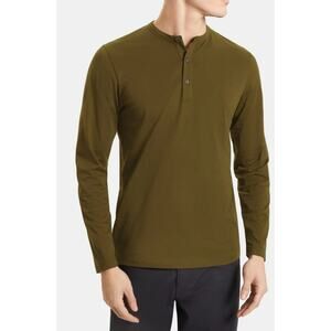 Theory Essential Henley Shirt Long Sleeve Organic Cotton Men's XXL Green