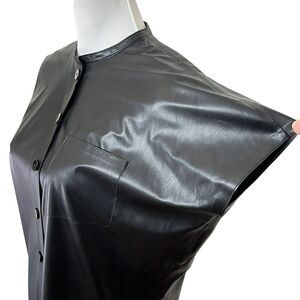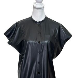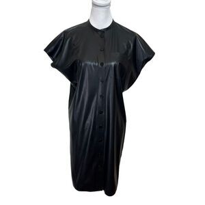 Theory Faux Leather Shift Dress Button Front Black Knee Length Women’s Size P