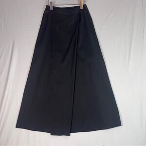 Theory Faux Wrap Maxi Skirt Womens 8 Black Cotton Poplin Minimalist Classic