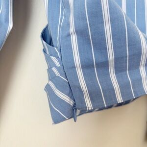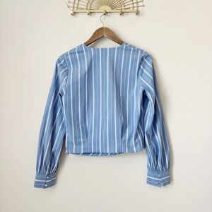 Theory Faux Wrap Top Quincy Striped Small Blue