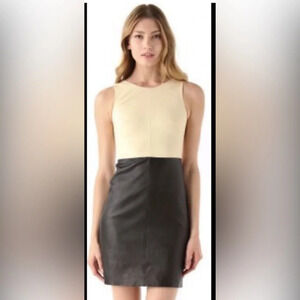 Theory Feria C Danish Leather Dress Bone & Black Lined Sleeveless Bodycon Size 0