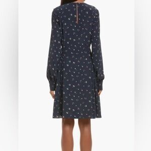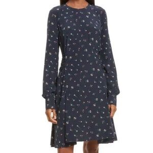 Theory Floral Print Lace-up Side Silk Dress In Deep Navy Size 0. Long sleeves, button cuffs, crew neck, lace up side detail, keyhole back, dark navy with floral, 100% silk Size 0