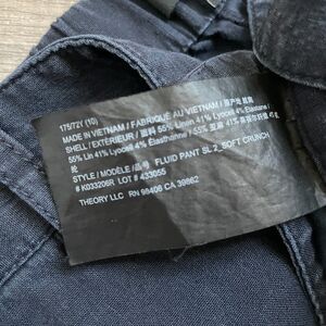 Theory Fluid Pant Soft Crunch linen blend navy pants elastic waist size 10 women