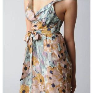Theory Galla Dress Silk Watercolor Wrapover Bodice Open Back Ruffled Tie Waist 8