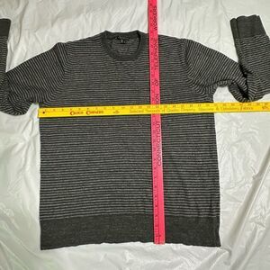 Theory Mens Striped Cillin TS Aviary Sweater Gray Cotton blend fine knit sweater Size Medium