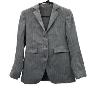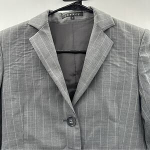 Theory Gray & White Virgin Wool Pinstripe Long Sleeve Three Button Blazer Sz 0