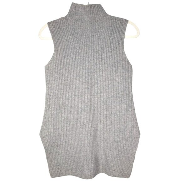 Theory Gray Wool Cashmere Blend Chunky Ribbed Sleeveless Mock Neck Sweater