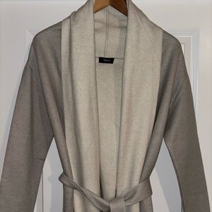 Theory Grey & Cream Belted Long Cardigan Size Small