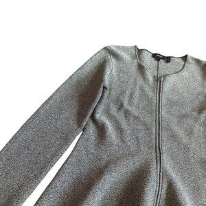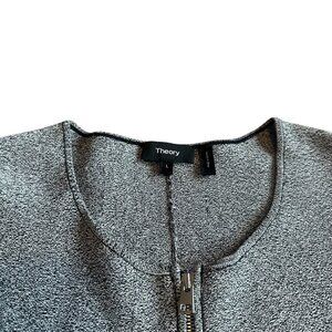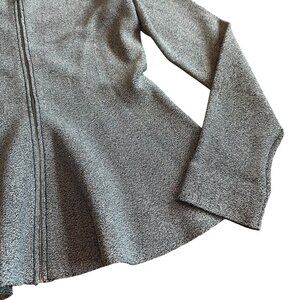 Theory Grey Marled Zip-Down Peplum Sweater Jacket Stretch Size Large Women's