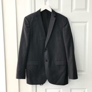 Size 42 Long from theory. Style name Xylo NP Karma two button blazer. Dark charcoal grey. 100% wool. Preowned in good condition with no stains or tears.
