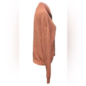 Theory Half-Zip Sweater in Rib Knit Cotton in Terracotta Size Medium