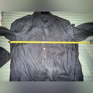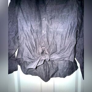 Stylish gray button-up shirt with a tie front detail. Perfect for casual or formal occasions. New with tags! $325 shirt! Hemp!
