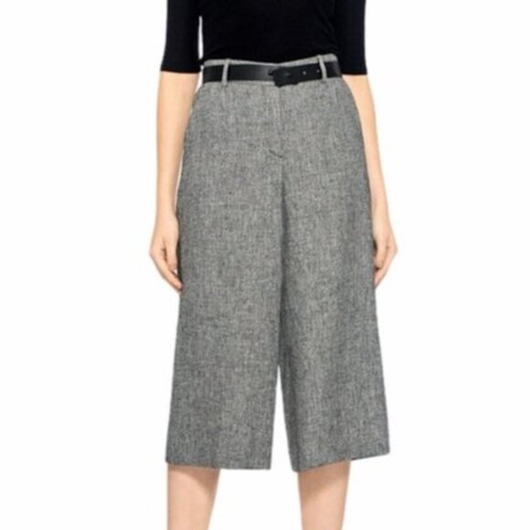 Theory Helentra Linen Crepe Cropped Wide Legged Trousers Cropped Ladies 6 USA
