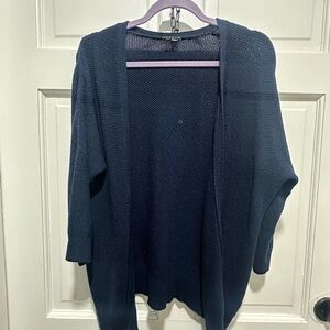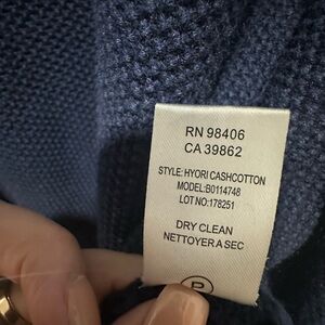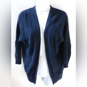 Theory Hyori Cashcotton Waffle Knit Cardigan Cashmere Blend Large Navy Blue EUC