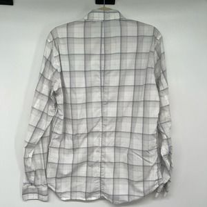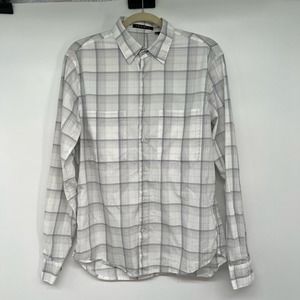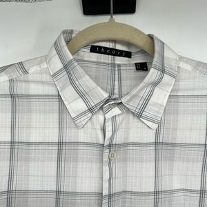 Theory Irving Medium Plaid Shirt Men's Size M Ivory Button-Down 100% Cotton